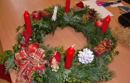 Dienstag und Mittwoch werkelten alle Schüler in kleinen Gruppen. Mit vielen Helfern entstanden schöne, weihnachtliche Dinge, wie Kränze, Sterne, Häuschen, Windlichter und ähnliches.
